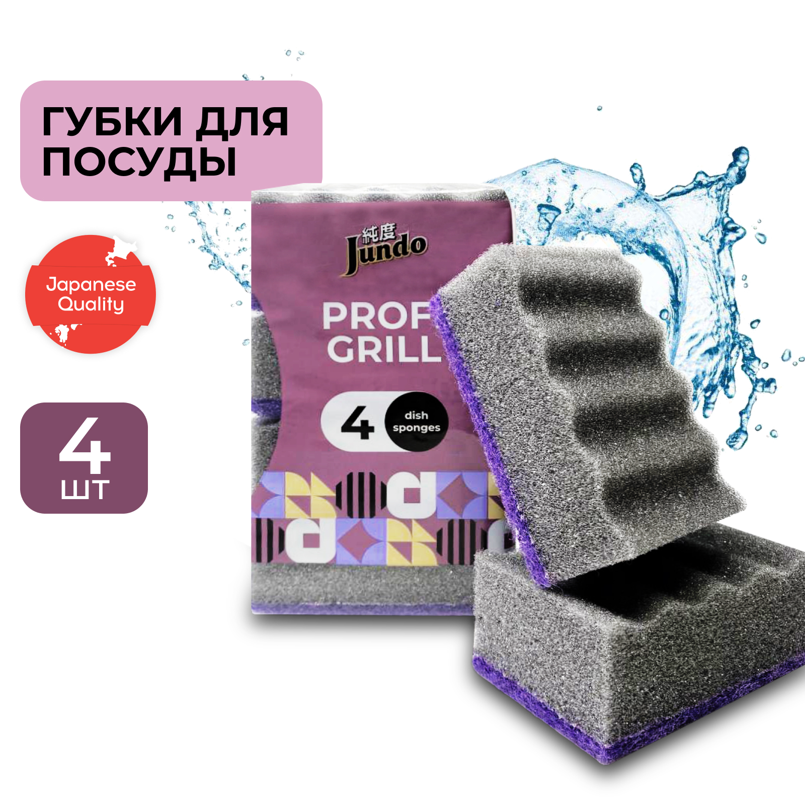 Губки для мытья посуды Jundo Dish Sponges Profi Grill 4шт