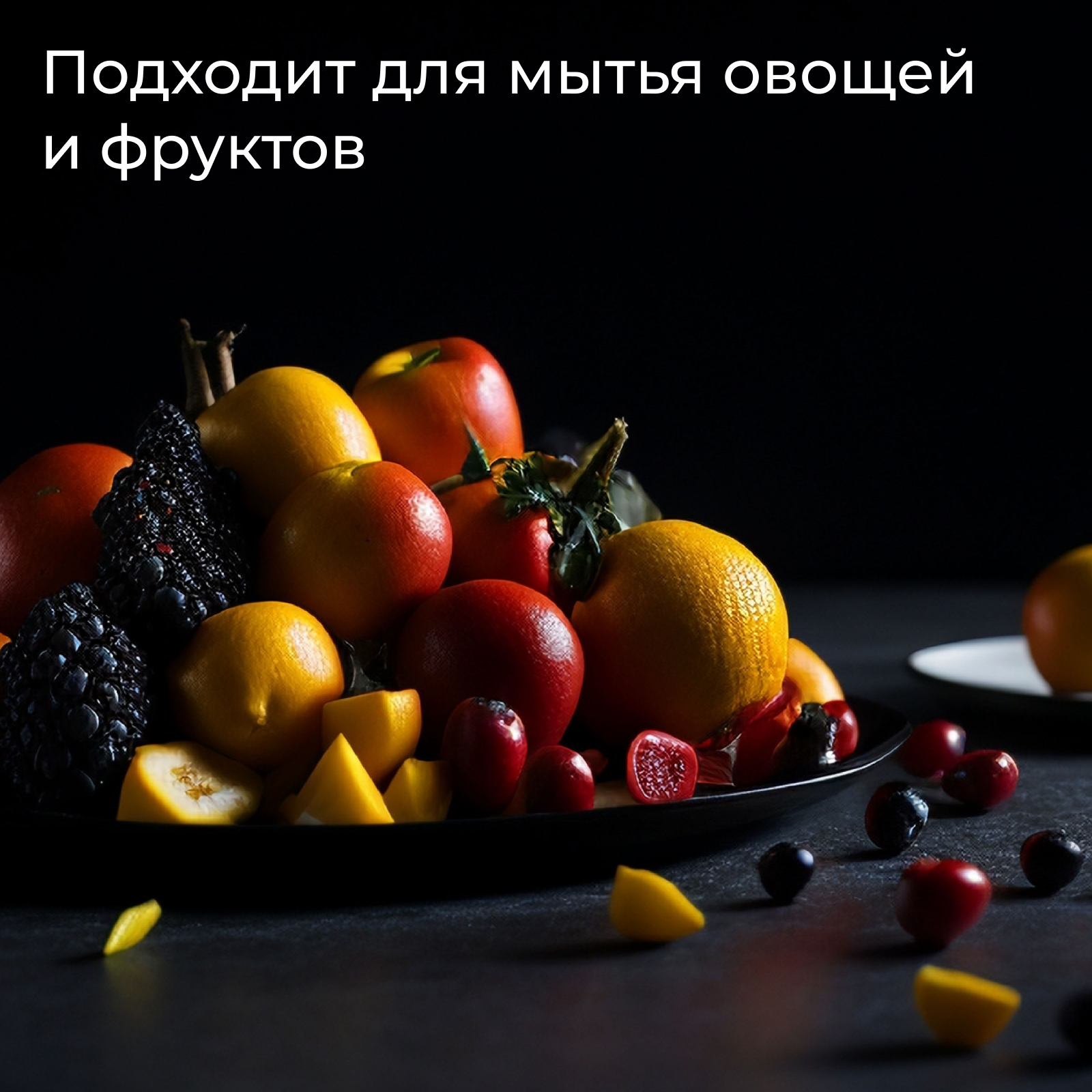 Позвольте себе насладиться непринужденной роскошью, где функциональность сочетается с элегантностью лаконичного дизайна. Представьте легкий аромат фруктовых садов сдержанную изысканность цветущего жасмина и цитрусовых ноток, окутанных солнечными лучами, все это переплетается, создавая изысканный и тонкий шлейф, который остается на Вашей кухне. Плотная пена эффективно очищает поверхности, идеально подходя для безопасной очистки детских принадлежностей, овощей и фруктов.